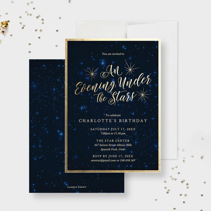 An Evening Under the Stars Birthday Party Invitation, Sweet 16 Celestial Party Invitation Template