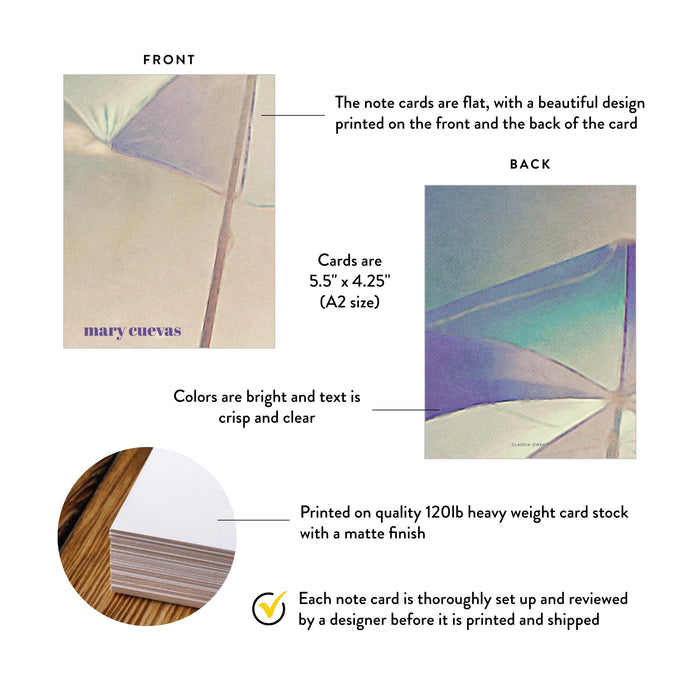 Our cards are printed in the USA on high-quality, heavy weight white matte card stock, ensuring that your note cards will look and feel premium.