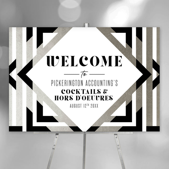 Black and Silver Geometric Welcome Sign for Cocktails and Hors D'oeuvres Party