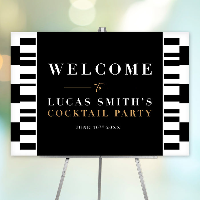Black and White Cocktail Party Welcome Sign with Geometric Design