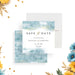 Announce your special gathering in a classy and memorable way with this elegant save the date card, designed especially for rehearsal dinners and other pre-wedding celebrations. Featuring soft blue watercolor textures and delicate gold speckles, this modern design adds a refined yet romantic touch to your event.
