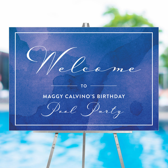 Blue Watercolor Welcome Sign for Pool Birthday Party, Summer Party Signage