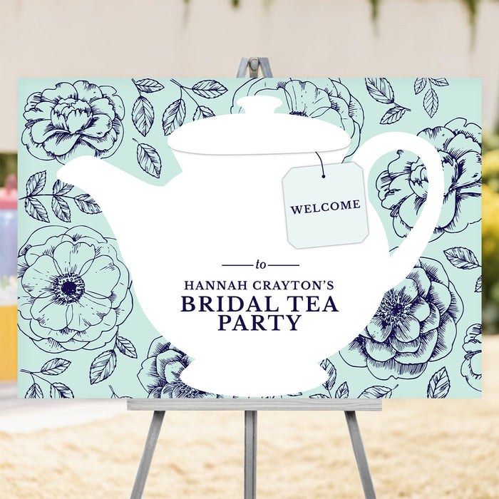 Bridal Tea Party Welcome Sign, Mint & Navy Teapot Sign for Bridal Shower, Floral Bridal Party Decor