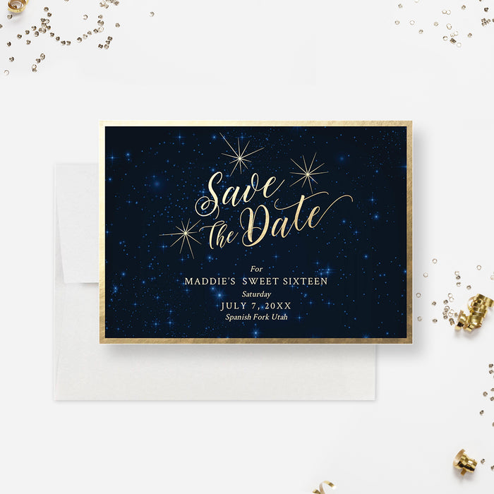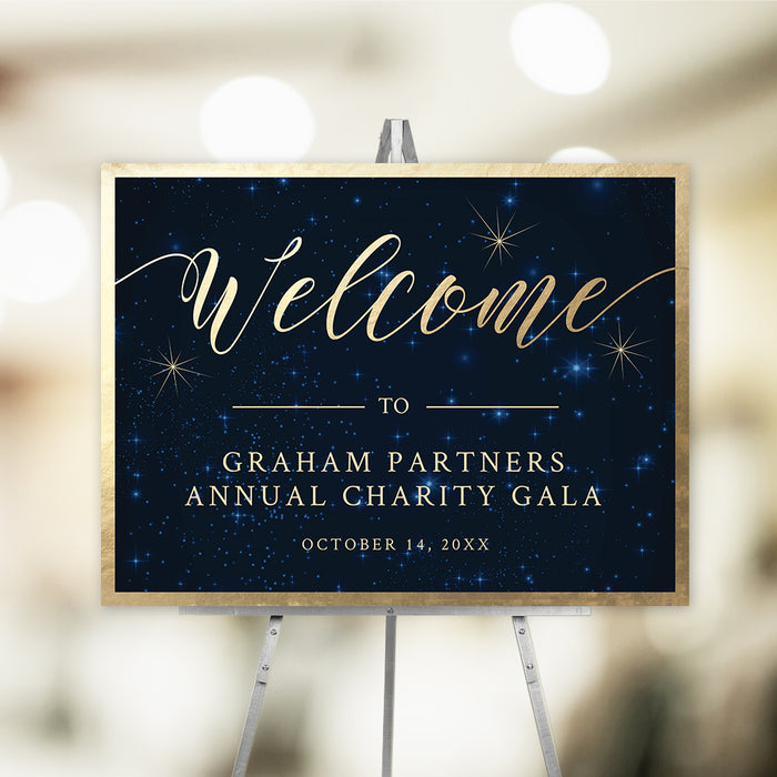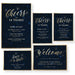 Bring your special event to life with this elegant starry night design, available as a complete matching set. Featuring a rich navy background sprinkled with twinkling stars and gold accents, this suite adds a touch of glamour and charm to any celebration.