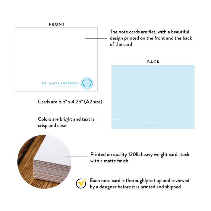 Whether you're sending a thank-you note to a patient, making a referral to a colleague, or simply staying in touch, our chiropractor note card is the perfect way to leave a lasting impression. This professional note card features a human spine icon that adds a unique and personal touch.