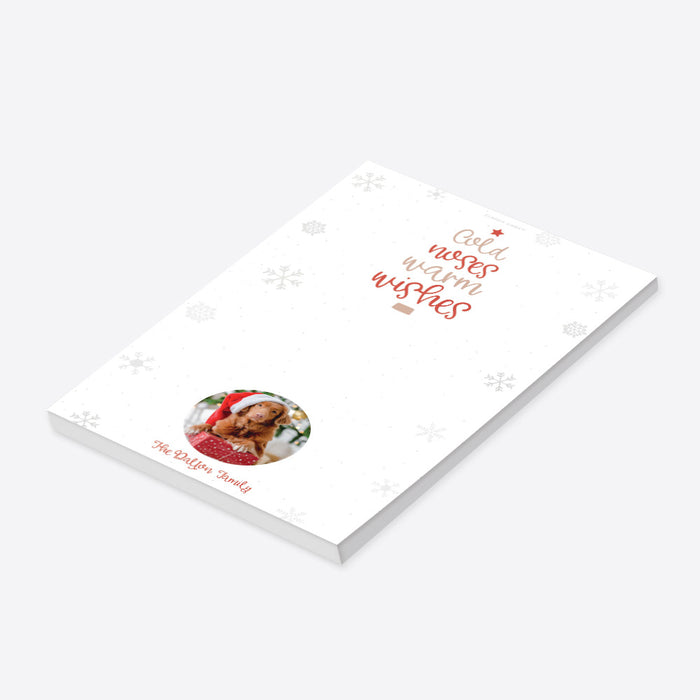 Cold Noses Warm Wishes Holiday Notepad with Pet Photo, Personalized Stationery Pad for Dog Lover, Custom Gift for Pet Owners