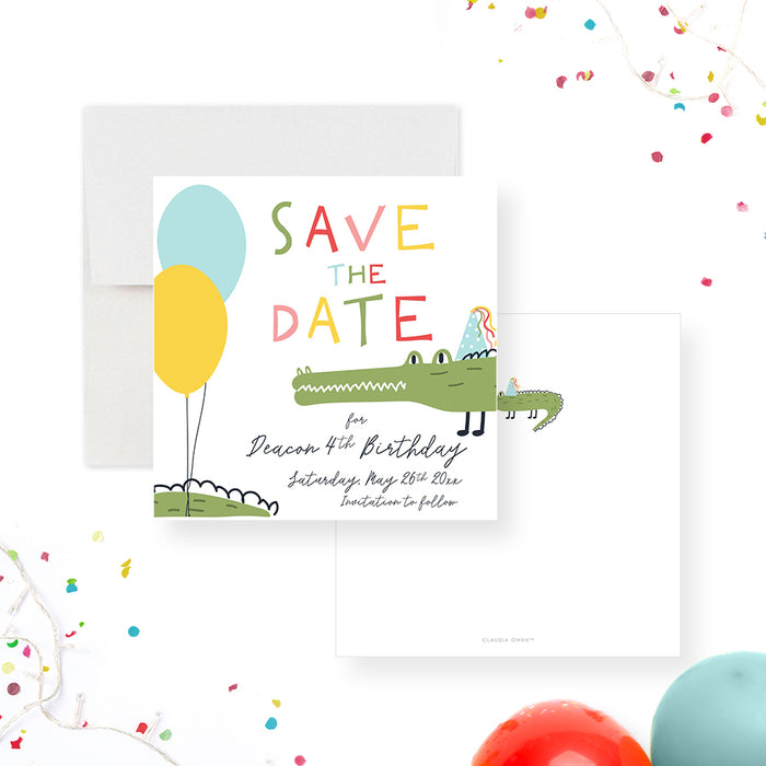 Colorful Crocodile Birthday Party Save the Date, Cute Alligator Save the Date Invite for Kids