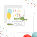 Make your little one's birthday celebration unforgettable with this fun crocodile-themed save-the-date card! Featuring a charming alligator illustration wearing a party hat, balloons, and colorful lettering, this card is ideal for boys and girls who adore animals. Allow your guests to mark their calendars in style and create excitement for your child's special day!