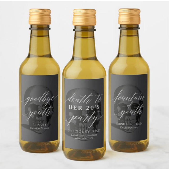 Death to My 20s Mini Wine Bottle Labels Template, RIP 20s Wine Labels Digital Download