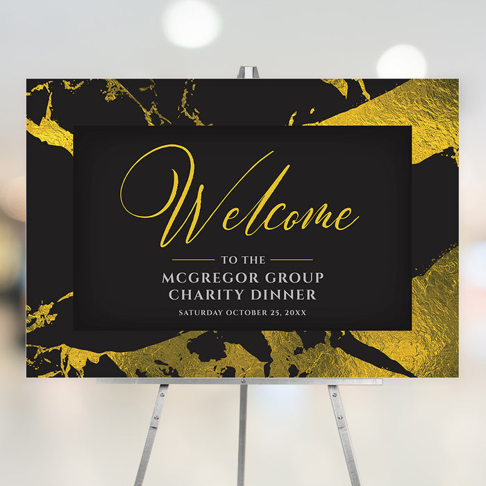 Elegant Black and Gold Welcome Sign for Nonprofit Charity Event