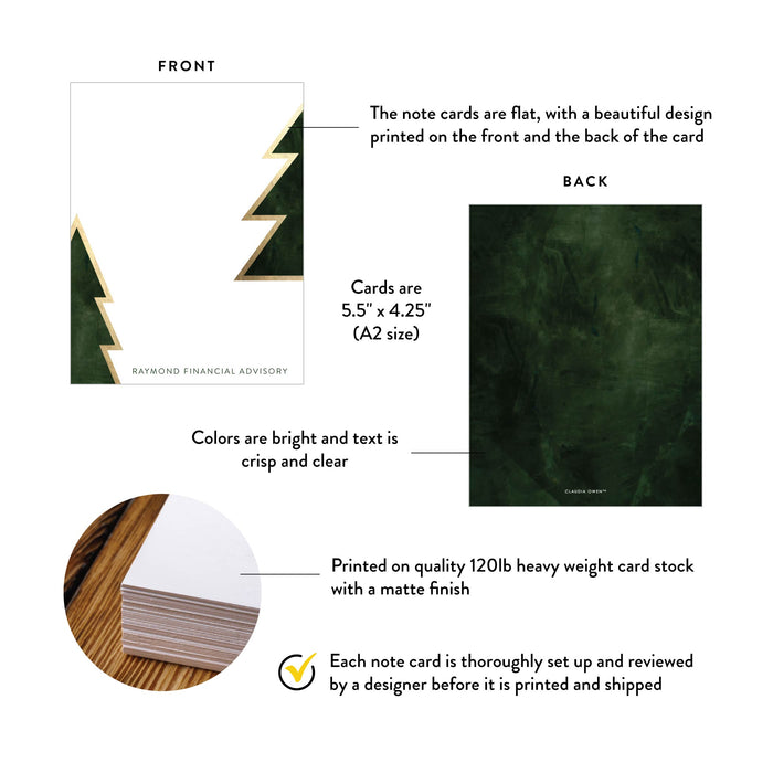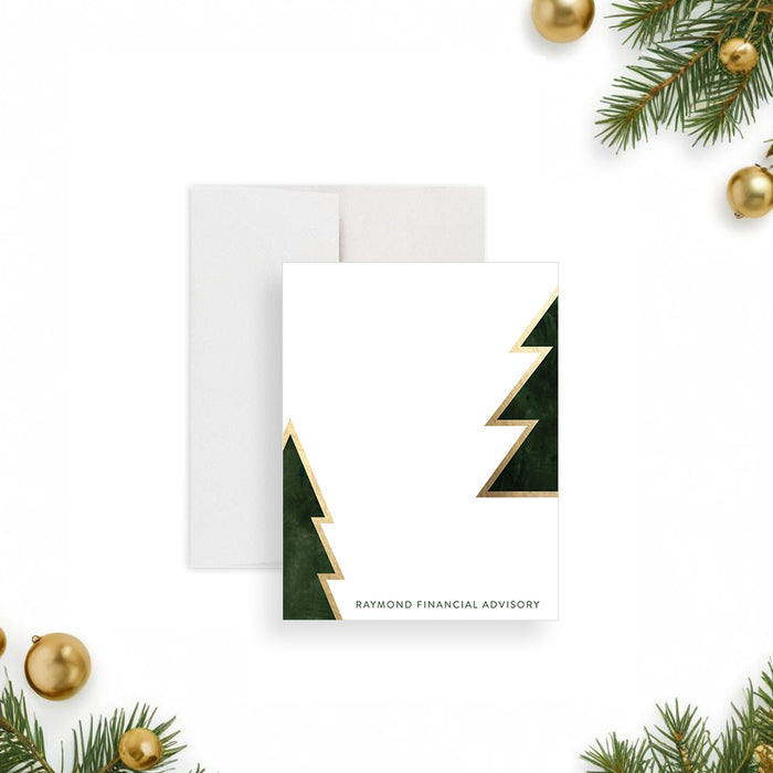 Send a thoughtful message this season with a holiday note card that blends simplicity, style, and seasonal charm. Featuring a striking green Christmas tree design in gold, this card is perfect for sending heartfelt messages of appreciation, warm holiday wishes, or thoughtful acknowledgments to clients, colleagues, and business partners.