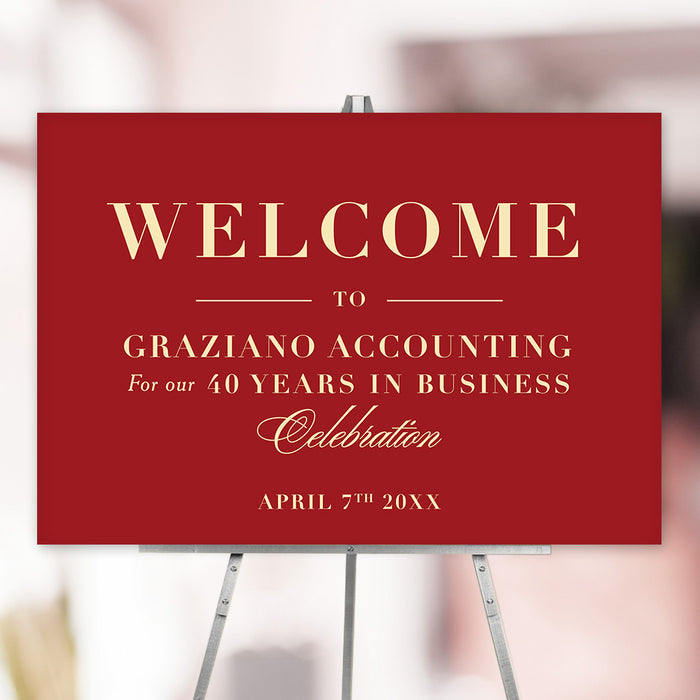 Elegant Red and Gold Welcome Sign for 40th Business Anniversary