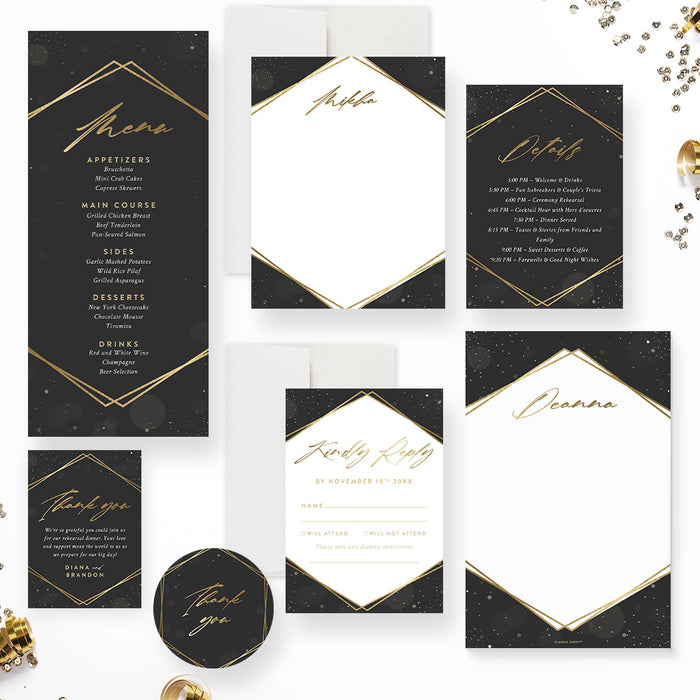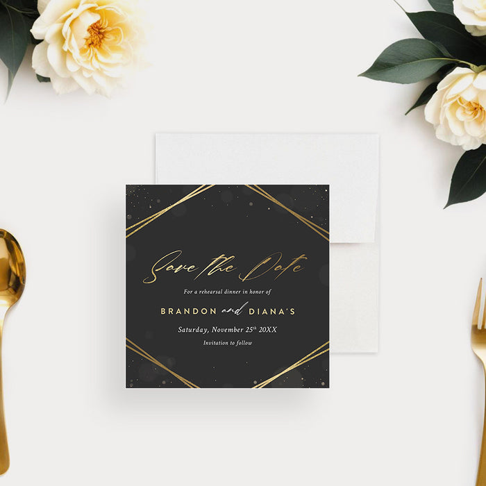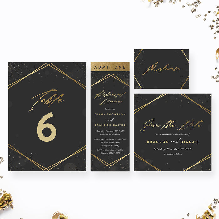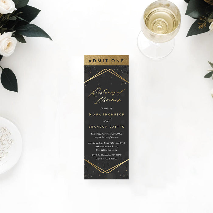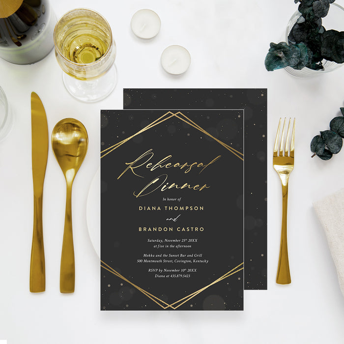 Elegant Rehearsal Dinner Invitation in Black and Gold