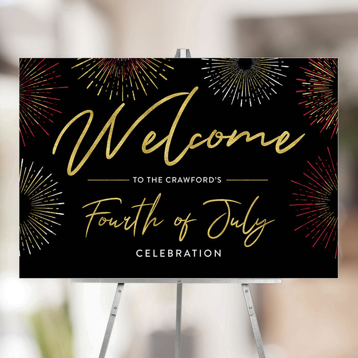 Fourth of July Celebration Welcome Sign with Fireworks, Independence Day Party Poster