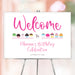 Create a delightful entrance with this charming and colorful welcome sign! Decorated with lovely cupcakes, playful pink lettering, and a delightful dessert theme, this whimsical sign brings a touch of magic and excitement to your event.