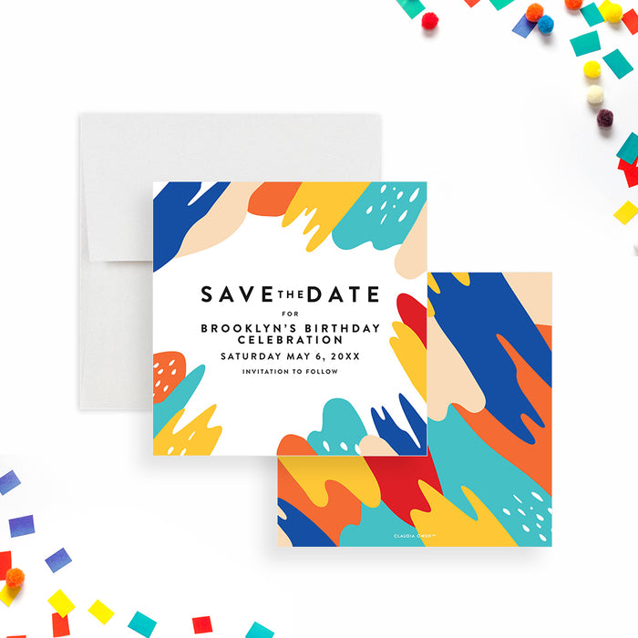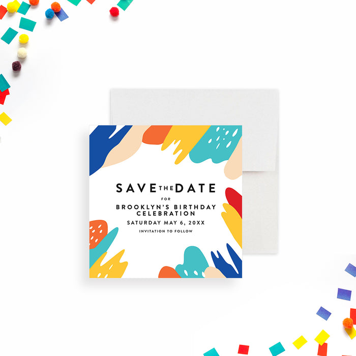 Fun Save the Date Card with a Colorful Design Perfect for Kids' Birthday Celebrations