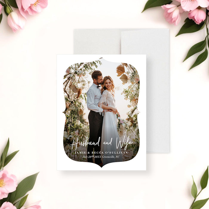Husband and Wife Wedding Announcement Card, Elopement Card with Photo, Just Married