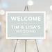 Welcome your guests in style with this modern wedding welcome sign, designed for couples seeking a minimalist yet elegant entrance statement. Featuring bold white lettering against a soft pastel background, this wedding signage is perfect for ceremony entrances, receptions, or wedding parties.