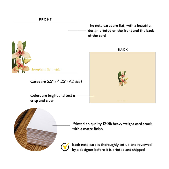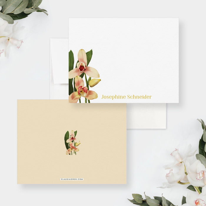 Orchid Note Card Set, Personalized Orchid Stationery for Women and Girls, Wedding Thank You Notes, Orchid Thank You Cards