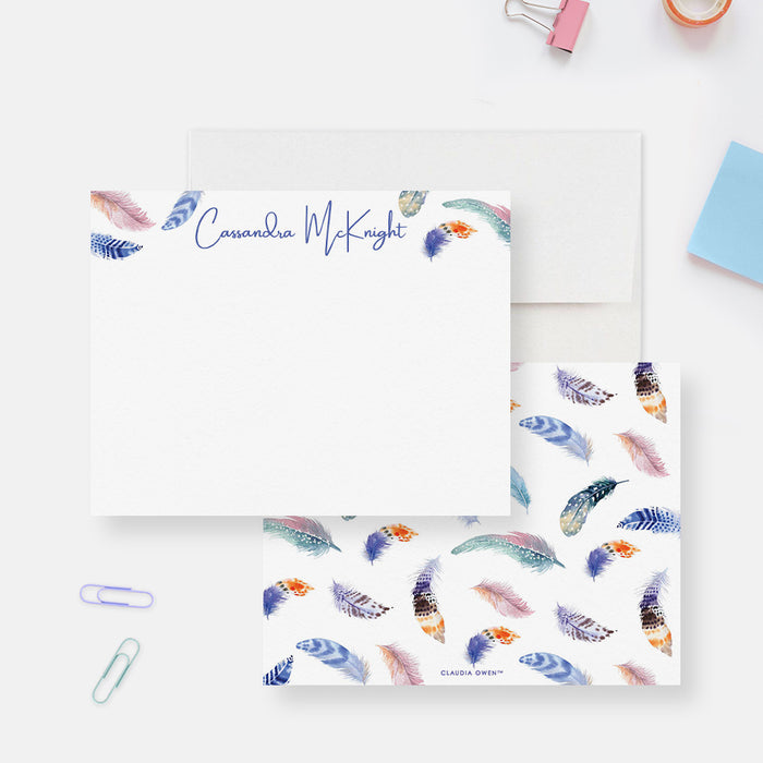 Personalized Feather Note Cards Boho Stationery Set for Women