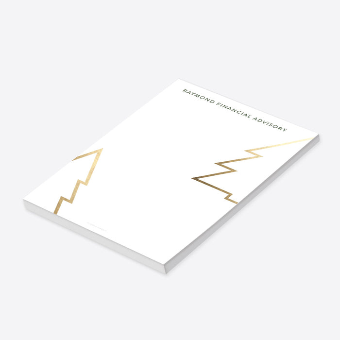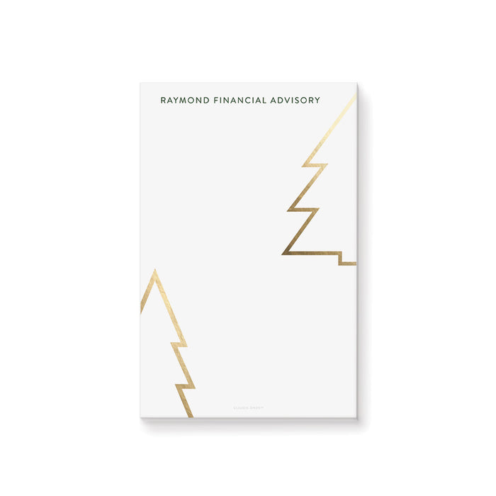 Add a festive yet refined touch to your workspace or corporate gifting this season with our elegant notepad, which features a minimal white backdrop enhanced by modern gold tree outlines — perfect to use around the office or at home. Whether you're jotting down daily to-do lists, meeting notes, or heartfelt holiday messages, this festive notepad brings style and function to your desk.