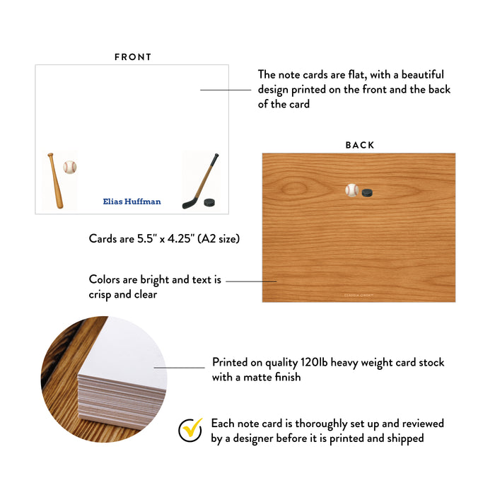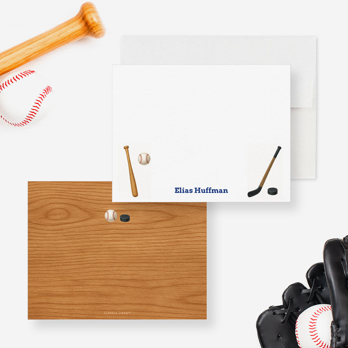 Personalized Sports Note Cards, Baseball and Hockey Note Card for Kids