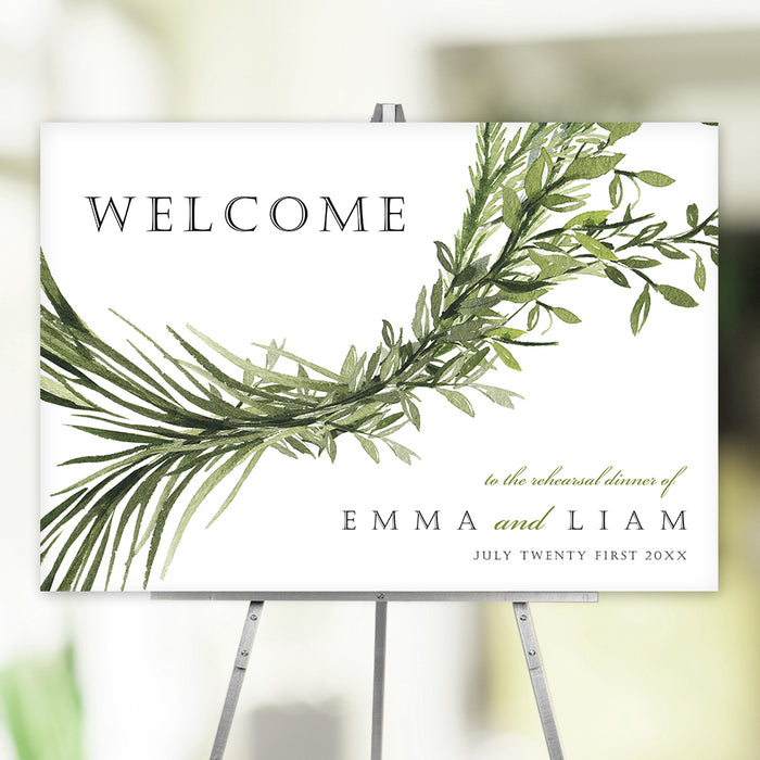 Rehearsal Dinner Welcome Sign Featuring Botanical Illustrations, Personalized Wedding Poster
