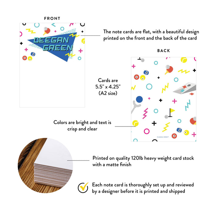 Printed on high-quality white matte cardstock, each card measures 5.5'' x 4.25'' (A2 size) and ensures durability and a sophisticated look. So, why wait? Grab a pack of these delightful notecards today and start sharing the joy of retro sports with every note you send.