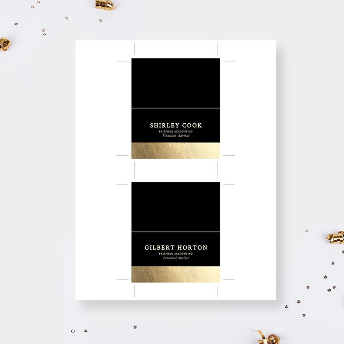 Wedding Place Card Template, Black and Gold Printable Table Name Cards, Elegant Seating Cards