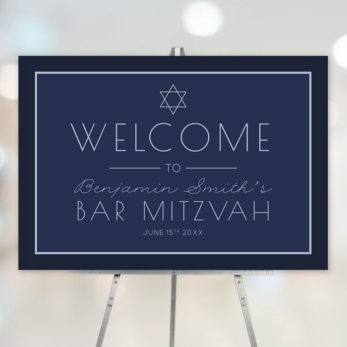 Welcome Sign for Modern Jewish Bar Mitzvah Celebration with Star of David