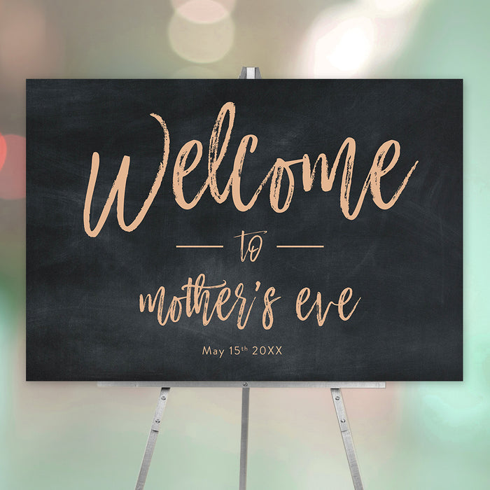 Celebrate the women who mean the most with our elegant mother’s eve welcome sign, styled with a warm chalkboard background and soft brush script lettering. Perfect for creating a cozy and heartfelt atmosphere, this sign sets the tone for your special gathering in honor of mothers. Whether it’s a brunch, dinner party, or a relaxing night in, this stylish design adds charm and personal warmth to your event.